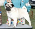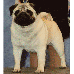 Handled by Connie Conger, Gorby's show record included 5 All-Breed Best-In-Shows, 6 Specialty Best of Breeds including a P.D.C.A. Regional Specialty, 71 Group Ones, 42 Group Twos, 29 Group Threes, 28 Group Fours, and 276 Best of Breeds (All-Breed shows). In addition, Gorby was selected as Best of Opposite Sex and received three Award of Merits at the P.D.C.A. National Specialty. He was in the top 10 of the P.D.C.A. ratings for five years (#7 - '90/91; #2 - '91/92; #3 - '92; #4 - '93; '94). He also received P.D.C.A. Medallion Awards for most Best In Shows ('92, '93), Group Ones ('91, '92, '93), Best of Breeds ('91, '92, '93), and Honorable Mention for Most Best in Specialty Shows ('92). He was rated in the Canine Chronicle Breed, All-Breed, and Toy Group standings for four years (#3 Breed, #3 All Breed - '91; #2 Breed, #1 All Breed, #8 Toy - '92; #3 Breed, #2 All Breed, #15 Toy - '93; #7 Breed, #4 All Breed, thru October '94). During his career, Gorby defined the standard for Pug movement and was used extensively in the AKC Pug Video. His qualities were recognized by over 160 different judges and he received many accolades from Judges and dog fanciers across the country. Gorby will be remembered as a happy Pug by all who knew him. He was a special Pug with a big heart and a wonderful personality. One that comes along just once in a lifetime. He was a breeder's dream; a handler's delight.